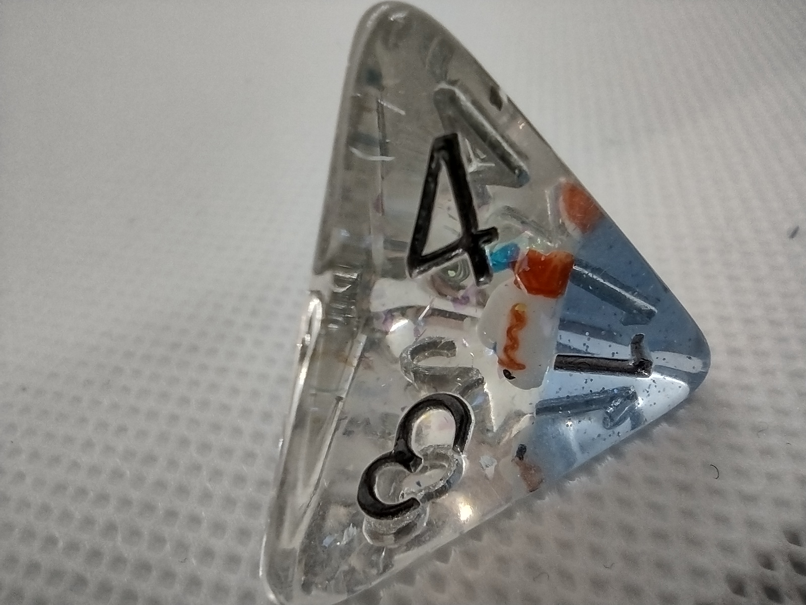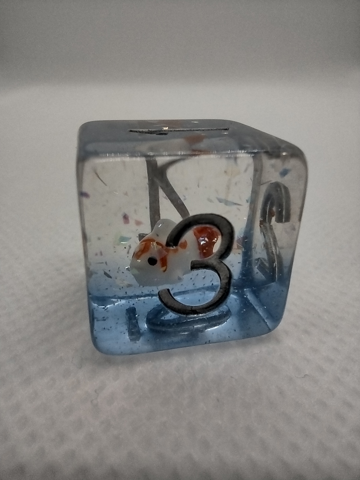 Elke dobbelsteen in deze set is gemaakt van transparant materiaal waarin een gedetailleerde vis zichtbaar is. De vis lijkt te zweven in de dobbelsteen, wat een dynamisch en bijna levendig effect creëert bij elke worp. Het ontwerp trekt direct de aandacht en zorgt voor een unieke uitstraling die je niet snel bij andere dobbelstenensets tegenkomt.